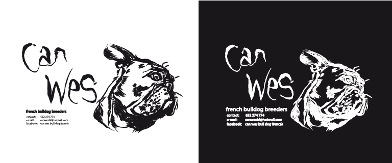 Com a imatge corporativa vaig vectoritzar el rostre d'un Buldog Francès i també vaig crear la imatge del seu nom amb un tipus de lletra més sesgada per plasmar el caràcter de Can Wes i del seu cap. Després férem la versió en positiu i en negatiu per poder adaptar-les als molts usos i aplicacions que aquesta empresa puga fer a continuació.